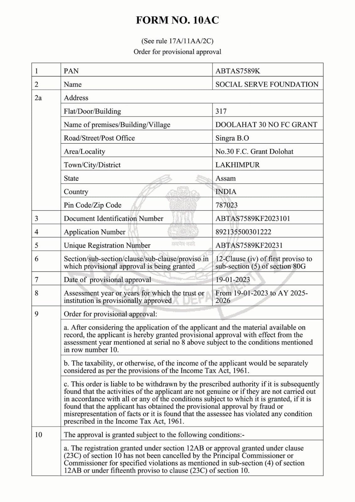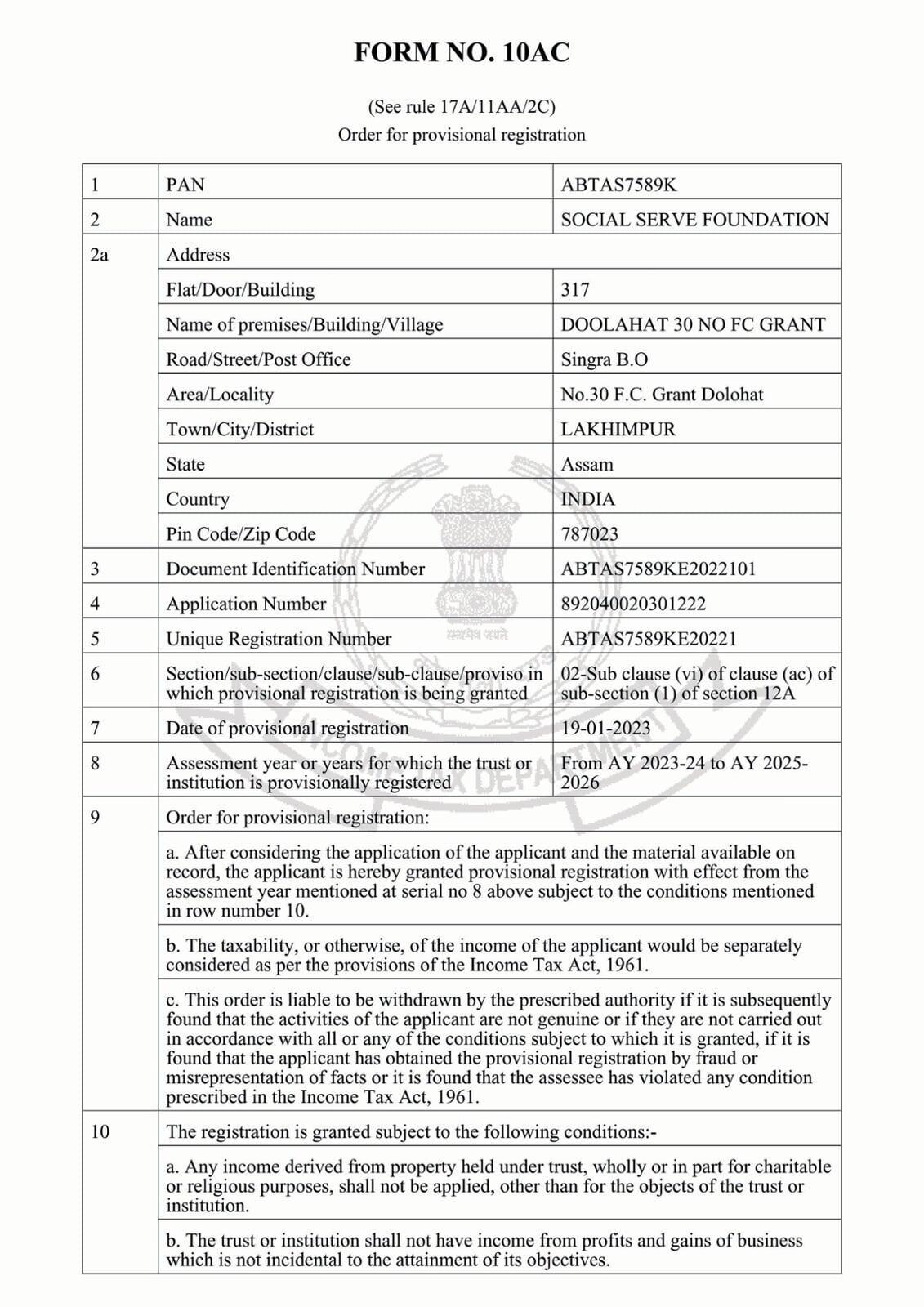 Society Registration Certificate